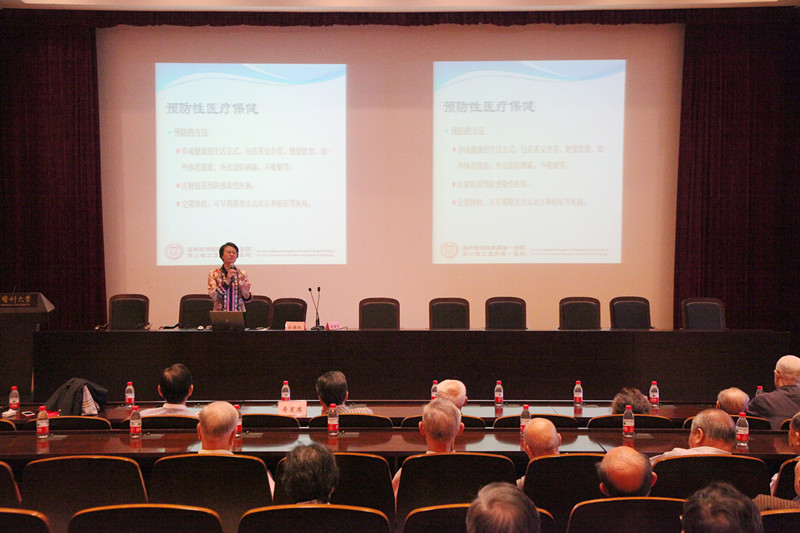 活动邀请了温州医科大学附属一医干部保健科主任杜晓红医生为大家作题为《老年健康保健》的专题讲座,讲解老年人疾病预防及保健知识,并与现场盟员互动,认真解答老盟员们提出的关于健康知识的疑问。讲座结束后,由盟市委组织的来自温州各大医院的盟员医生们已经早早的在义诊区等候,为广大老盟员提供义诊和健康咨询服务。此次参加义诊的医生涉及内科、外科、眼科、口腔科、等多个科室,热情的盟员医生们细心地为老盟员们测血脂、量血压、针灸推拿……,每科前面都排起了长长的队伍。