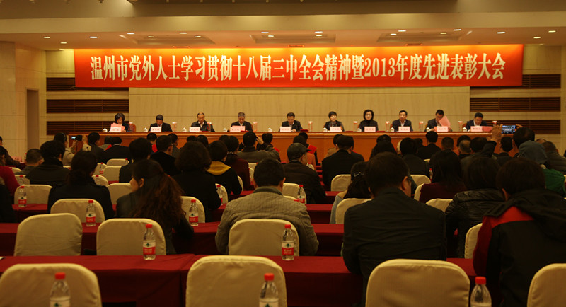 会议由常务副部长许若真主持。各民主党派主委王小同、潘长旺、徐育斐、夏克栋、鲍小瓯、黄兆鸽和市知联会会长黄作兴等出席会议。各民主党派和无党派代表人士, 2013年度“百名党外人士建功工程”示范典型和“诤友建言”活动优秀成果获奖者以及市委统战部机关、各民主党派市委会机关的全体同志共300余人参加会议。部分民盟温州市委委员、基层盟组织主委以及调研工委、信息工委成员参加了会议。(盟宣)