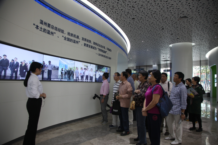 老盟员们在讲解员的引领下,从一楼印象序厅开始参观,了解了温州城市概况、历史文化,看到了温州的千年传承和市情市貌。在二楼展示空间,讲解员给大家解读了温州规划历程、及在历次总规指导下的城市建设及生态、生活、生产的各项规划成果。大家在三楼展示空间看到了温州的总体规划和未来蓝图,还一起观看3D数字沙盘,老盟员们在此看到了一幅生机勃勃的未来温州现代化大都市景象。一路走来,大家一起细细品味温州的昨天、今天,畅想温州美好的明天。